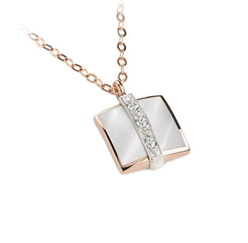 Collier or rose 750/000 résine précieuse blanc nacré et diamants